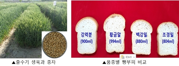 ‘황금알’은 단백질 함량이 약 12.2%로 높고, 글루텐 조성이 우수해 빵으로 구웠을 때 잘 부풀고 조직이 고르게 형성되는 장점이 있다. ‘고소’는 단백질 함량이 약 8.6% 정도이며, 과자로 구웠을 때 넓게 퍼지고 표면이 고루 잘 갈라져 제과 적성이 우수하다.