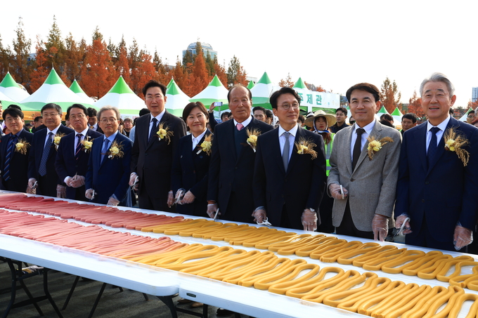 행사 과정에서 농업의 지속 가능한 성장과 발전을 다짐하는 농업인 결의문 낭독과 8도 대표쌀 가마솥 비빔밥 만들기, 1,111m 가래떡 썰기 등 다양한 퍼포먼스도 함께하며 화합과 축하의 분위기를 고조시켰다.