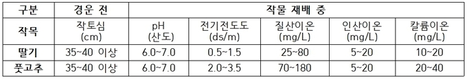 농촌진흥청(청장 이승돈)은 겨울철 딸기와 풋고추 시설 재배지 토양의 양분 집적으로 작물 중량과 품질이 저하되고, 토양 건강성이 떨어지는 것을 예방하기 위해 ‘현장 진단 처방법’을 확립했다.