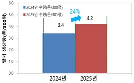 전북특별자치도 완주 딸기 재배 농가에도 현장 진단 처방법을 2년간 적용, 경운깊이를 깊게(27→40cm) 하고 겨울철 온도가 낮아 부족하기 쉬운 인산이온 농도를 높였다(4→17mg/L). 그 결과, 딸기 수량이 24% 늘어 농가 추정 수익액은 10아르당 550만 원 증가했다.