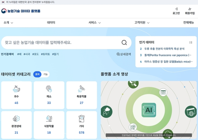 농촌진흥청은 연구자가 개별적으로 관리하던 데이터를 기관 차원에서 체계적으로 관리하고 활용도를 높이고자 2023년부터 ‘농업기술 데이터 플랫폼’을 구축했다.
