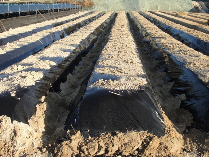 ▲파종 후 두둑 상면을 비닐 멀칭 → 토양 온도·습도 변화 최소화