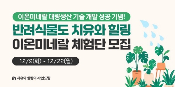 이번 체험단을 통해 그동안 생산 농가에서만 활용되던 이온미네랄을 각 가정과 사무실에서도 경험할 수 있도록, 12월 9일부터 반려식물용 이온미네랄 체험단 1,000명을 모집한다.