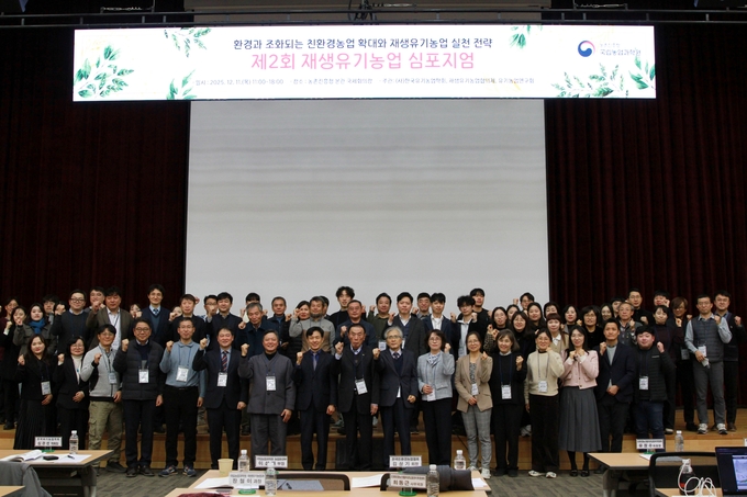 농촌진흥청(청장 이승돈)은 한국유기농업학회와 함께 12월 11일 본청 국제회의장에서 ‘제2회 2025 재생유기농업 학술토론회’를 열었다.