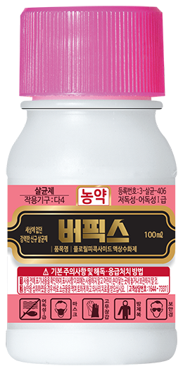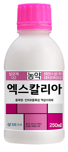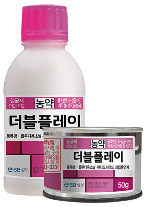 - 한 번 살포로 흰가루병과 잿빛곰팡이병을 동시에 방제