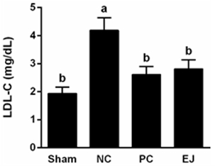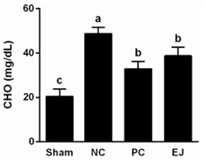 Sham, 일반군; NC, 음성 대조군; PC, 양성 대조군; EJ, 비파잎 식이군