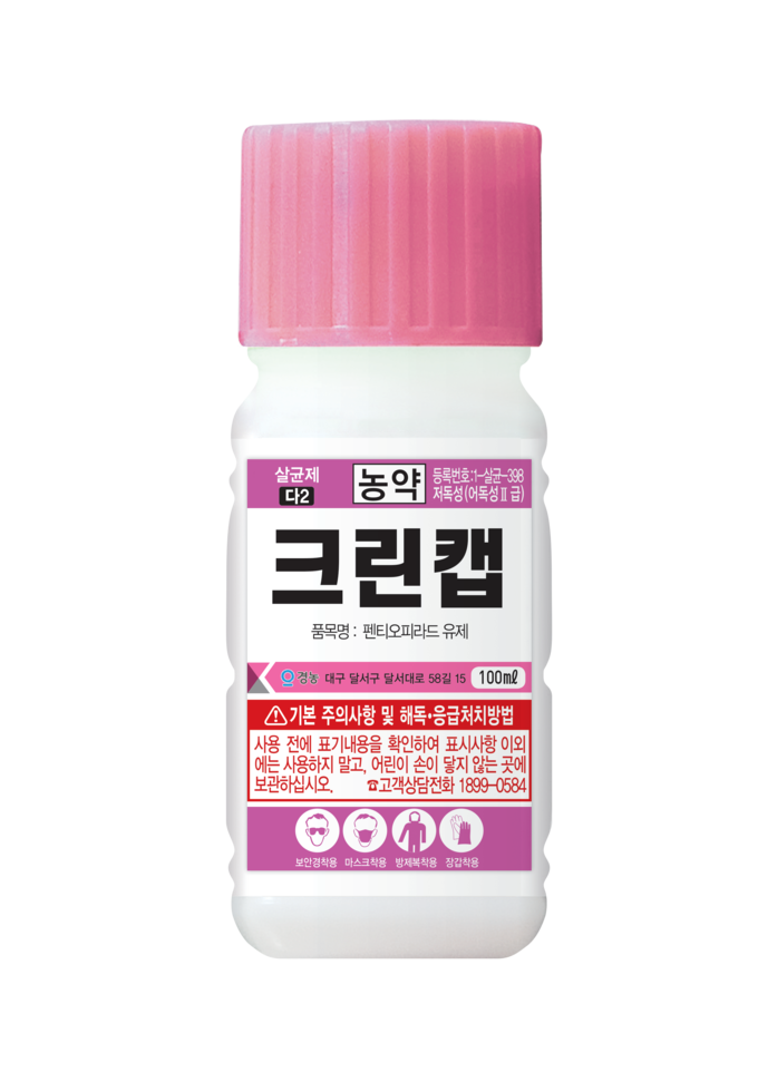 ‘크린캡’은 잿빛곰팡이병과 흰가루병에 우수한 예방 효과를 보이는 살균제로, 병원균 포자 형성을 효과적으로 억제해 발병 전 예방효과에 강점을 가진 제품이다. 기존 약제에 내성을 보이는 균주에도 안정적인 방제 효과를 발휘하며, 저농도·저약량으로도 효과가 뛰어나 작물과 환경에 대한 안전성이 우수하다. 오이, 토마토, 딸기 등 시설 원예 작물에서 초기 방제용으로 활용도가 높다.