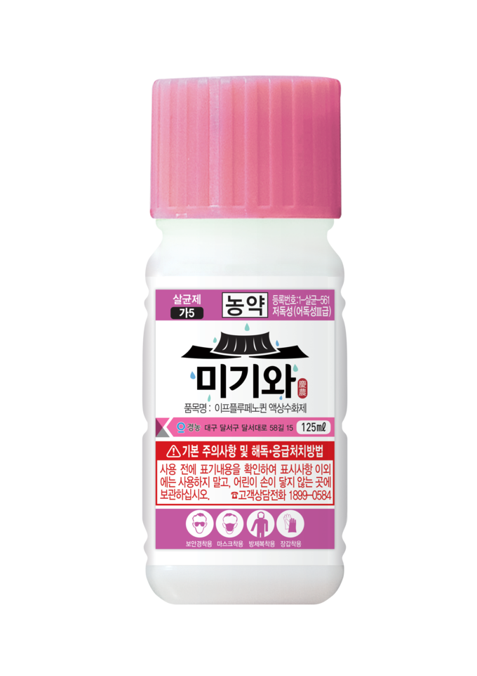 ‘미기와’는 흑성병·잿빛곰팡이병·잿빛무늬병 등에 탁월한 효과를 가진 신규 계통의 살균제다. 동오R&D센터의 시험연구 결과, 미기와 처리 과실은 무처리 대비 병 확산이 95% 이상 억제하는 것으로 나타났다, 이는 현장에서 약효가 실용적으로 입증된 사례다. 또한, 미기와는 병원균의 핵산 합성을 억제하는 독자적인 작용기작(가5)을 갖고 있어 기존 계통의 살균제와 교차저항성이 없어 약제 내성 우려를 줄여준다. 이를 통해 시설 하우스에서 병 발생 초기에 예방적 방제로 사용하거나, 병 발생 이후 치료적 방제에도 유연하게 대응할 수 있다.