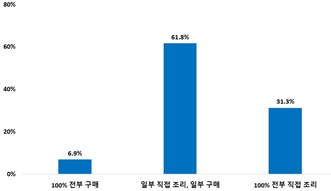 설 연휴 귀향하겠다는 가정은 47.3%에 불과했다. 나머지는 집에서 휴식하거나 여행을 떠나겠다고 응답했다. 설 연휴 기간 집에서 식사를 해결하는 가정은 73.5%로, 외식·배달·포장(26.5%)보다 많았다. 지난 추석 대비 가정 내 식사 비중이 소폭 증가했다.