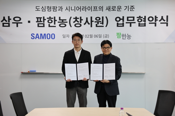 팜한농(대표 김무용)이 지난 6일 삼우종합건축사사무소(대표 손창규)와 ‘도심형팜 사업 적용 및 확대에 관한 협약’을 체결했다. 서울 강동구 삼우종합건축사사무소에서 진행된 이번 협약에 따라, 양사는 시니어에 특화된 도심형팜 모델 개발을 목표로 협업할 계획이다.