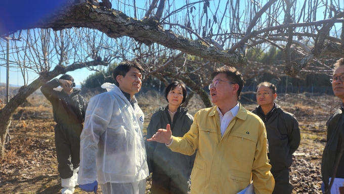 농촌진흥청 김상경 차장은 2월 25일 오후 충청남도 논산시 성동면에 있는 배 농가를 찾아 막바지로 접어든 겨울철 궤양 제거 작업 상황을 살피고, 관내 과수화상병 예찰·방제 계획을 청취하며 효율적 대응 방안을 논의했다.