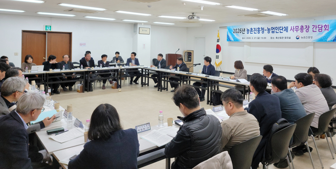 농촌진흥청 김상경 차장은 2월 27일 오후 서울 서초구에 있는 축산회관에서 농업인 단체 사무총장들과 만나 단체별 주요 현안을 청취하고, 농업·농촌 발전을 위한 상호 협력 방안을 논의했다.