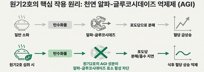 ‘원기2호’ 고춧잎은 혈당 상승 억제(AGI) 활성이 74.8%로 일반 고춧잎보다 2~5배 높다. 동물 실험 결과, 공복 혈당은 13%, 혈장 인슐린 농도는 24% 감소하고, 인슐린 저항성 지표(QUICKI)는 3.8% 증가하는 등 11개 당뇨 관련 지표가 유의미하게 개선됐다.
