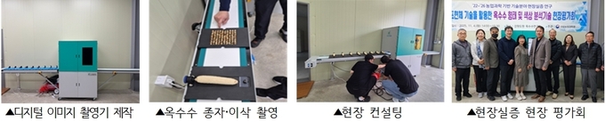 지난해 강원특별자치도 옥수수연구소의 옥수수 전용 운반 장치(컨베이어)에 ‘영상 기반 표현체 분석 기술’에 필요한 ‘이미지 촬영기’와 ‘분석 소프트웨어’를 설치하고, 현장 실증을 거쳐 옥수수 형질 대량분석 체계를 구축했다.