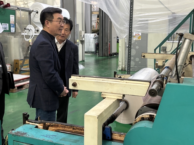 농촌진흥청(청장 이승돈) 국립농업과학원 성제훈 원장은 3월 17일 충남 천안에 있는 생분해성 멀칭필름 생산 현장을 찾아 연구 현황을 듣고 시설을 둘러봤다.