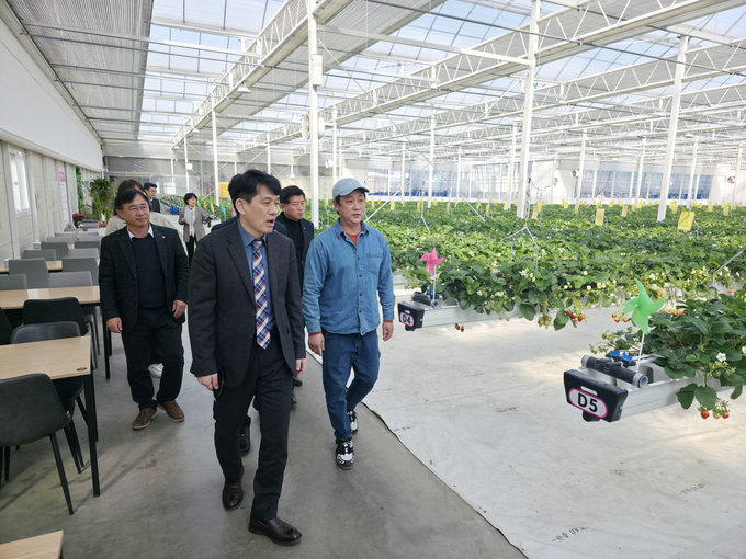 농촌진흥기관 방문을 마친 김 차장은 제주시 애월읍 시설딸기 농가를 찾아 제주농업기술원이 추진한 ‘제주형 시설원예 스마트팜 시스템 보급 사업’ 적용 사례를 살폈다. 이 자리에서 생산· 가공·체험을 연계한 농촌융복합산업 활성화방안에 대해 농업인 의견을 들었다.