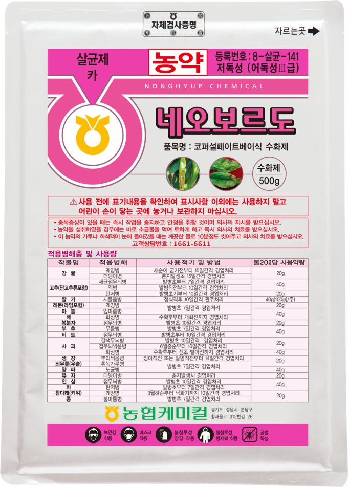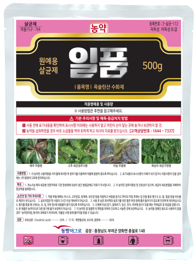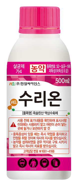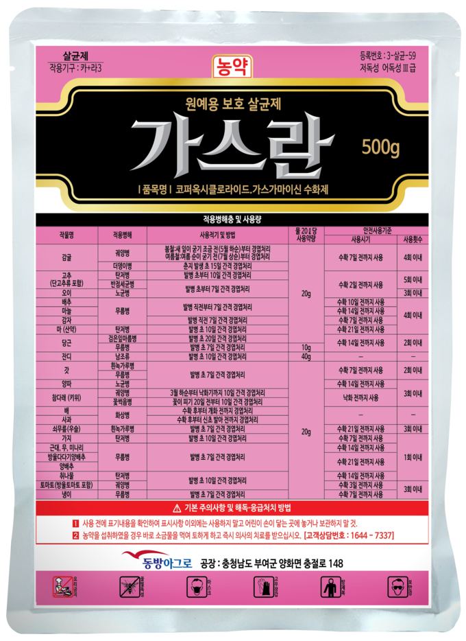 - 내성균 발생이 쉬운 세균병해는 물론 일반병해까지 폭 넓게 사용가능