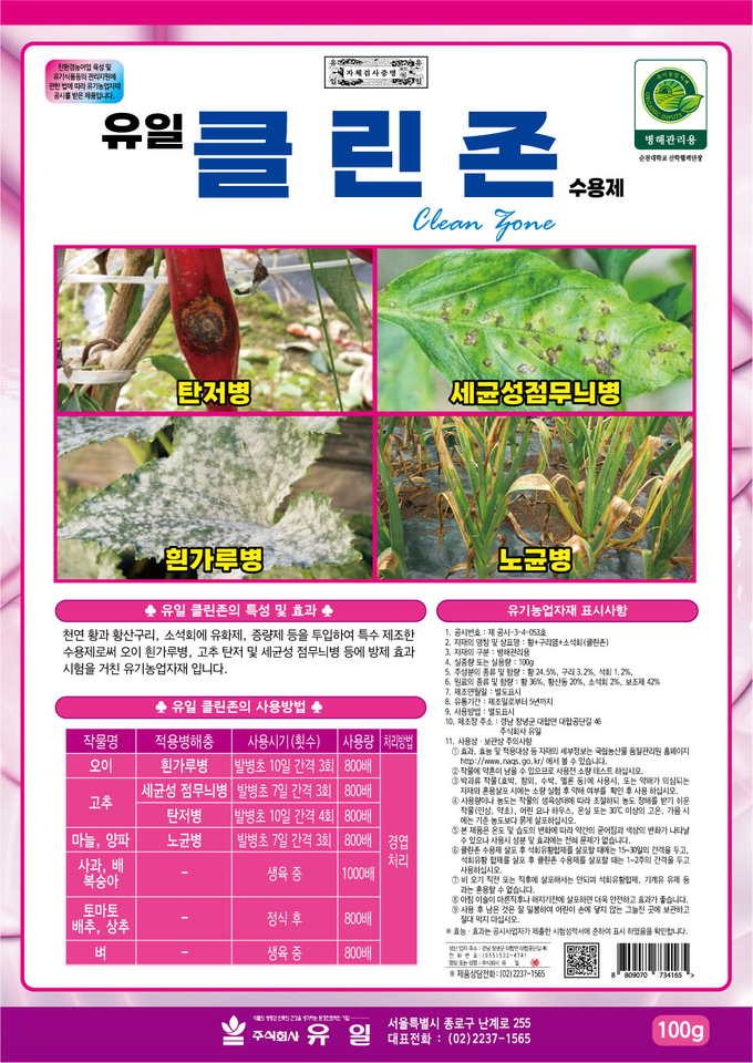 - 국내 유기농업자재에도 등록되어 있어 유기농 재배에서도