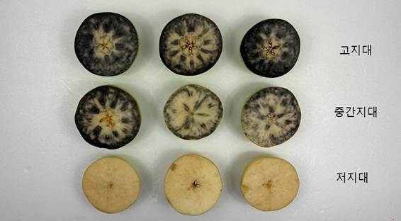 또한, 저지대보다 중간 지대와 고지대에서 껍질의 노란색 발현이 뚜렷했다.