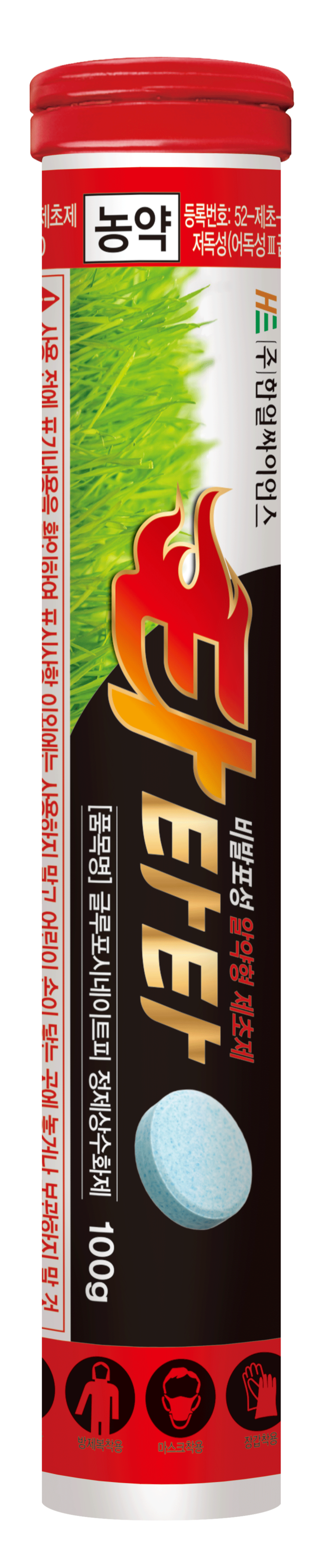 한얼싸이언스의 신제품 ‘타타타’는 특허 제형기술을 적용한 세계최초 비발포성 알약형 제초 제로, 계량 없이 간편하게 사용할 수 있는 것이 가장 큰 특징이다. 물에 희석 시 약 1분 내 빠르게 붕해되어 균일하게 용해되며, 거품 발생이 적어 작업 효율을 높였다.