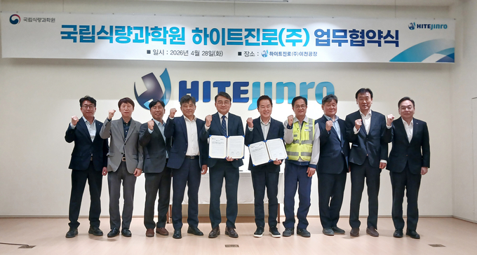 농촌진흥청(청장 이승돈) 국립식량과학원은 하이트진로(주)(대표이사 장인섭)와 4월 28일 하이트진로 이천공장에서 ‘국산 가공용 벼 품종을 활용한 프리미엄 증류주 개발 및 산업화’를 위한 업무협약을 체결했다.