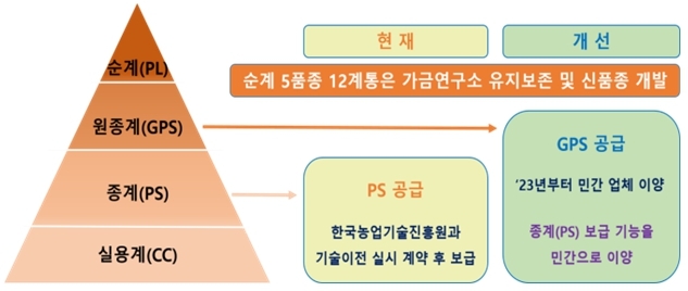 한편, 국립축산과학원 가금연구센터는 민간 토종닭 전문 종계장과 협력 체계를 구축해 ‘우리맛닭’을 보급하고 있다. 가금연구센터가 씨닭 생산에 필요한 원종(GPS)을 종계장에 보급하면, 종계장은 일반 농가에 씨닭을 공급하는 방식이다.