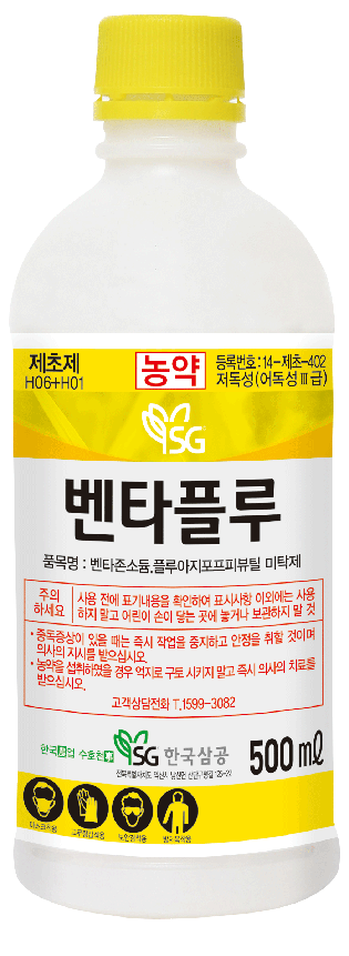 - “벤타존소듐 30%”와 “플루아지포프피뷰틸 3.5%의 성분으로 만들어낸 콩밭 헛골처리 전문 제초제