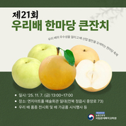 우리 배 품종의 매력을 알리고 산업 재도약을 다짐하는 자리가 마련된다. 농촌진흥청(청장 이승돈)은 11월 7일 전북특별자치도 정읍시 연지아트홀 일대에서 ‘제21회 전국 우리배 한마당 큰잔치’를 연다. 이번 행사는 정읍시 협조로 농촌진흥청이 주관하고 한국우리배연구회가 주최하며, 전문가 발표와 전시, 시식 등이 이어진다. 정읍은 약 250년 된 재래종 ‘청실배나무’(천연기념물 제497호)가 있어 학술적으로 의미 있는 곳으로 이날 강연에서는 ▲소비자 요구와 배 품종의 역할 ▲배 품질과 생리장해에 영향을 주는 토양 환경 요인에 대해 다룬다. 아울러, 전국에서 출품한 우리 품종 배 가운데 우수 농가 7곳을 선정하는 ‘최고 품질 우리 배 품평회’ 시상식을 진행한다. 부대 행사로는 ▲갈색 배 ‘신화’, ‘추황배’, ‘만황’ ▲초록색 배 ‘설원’, ‘슈퍼골드’, ‘황금배’, ‘그린시스’ 등 우리 유망 품종과 ▲서양배 ‘바틀렛’ ▲중국배 ‘금주과리’ 등을 전시한다. 또한, 우리 배와 배를 이용해 만든 떡, 양과자(빵) 등 가공품 시식 행사를 진행한다. 맛 평가에 참여한 이들에게는 배 석세포가 포함된 세안제, 배즙, 과자 등을 증정할 예정이다. 한편, 우리나라 배 산업은 20