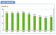 농약산업에 빨간불이 켜졌다. 80~90년대 ‘첨단과학의 총아’ ‘과학영농의 기수’로 불리며 시판상의 효자상품이던 농약이 2000년 이후 급격한 수익성 저하 현상을 보이며 시판상의 구색상품으로 전락했다. 시판상에서는 ‘마진이 없는’ ‘심각한 출혈경쟁을 해야 하는’ ‘시판상 경영에 도움이 안되는’ 천덕꾸러기로 전락했고, 농민들에게도 ‘흔하고 흔한’ ‘어디에서나 구매할 수 있는’ ‘가격을 더 내려야 하는’ 천덕꾸러기로 전락했다. 시판상과 농민들로부터 천덕꾸러기 취급을 받는 농약. 제조회사들의 경영상황도 갈수록 나빠지고 있다. 매출의 정체와 수익성의 감소로 경영압박이 심화되고 있으며, 신제품 개발에 대한 연구개발비도 갈수록 줄어들고 있다. 농약산업의 미래 자생력 확보에 빨간불이 켜진 것이다. 시판상과 농민들로부터 환대받던 농약이 이렇게까지 홀대받고 있는 배경과 향후 전망을 살펴본다. 농지가 줄어든다. 농약 사용량이 줄어든다. 아무래도 가장 큰 이유는 농지가 줄어들고, 그에 따라 농약 사용량이 줄어들고 있기 때문이다. 과학기술의 발달과 기계장치의 발달로 농약산업의 생산기술은 지난 30여년동안 비약적인 발달을 거듭해 왔다. 생산속도와 생산량에서 몇 배의 발전을 거듭