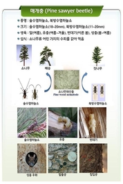 산림청(청장 신원섭)은 소나무재선충병을 옮기는 매개충이 4월 하순부터 활동할 것으로 보인다고 31일 밝혔다.산림청 국립산림과학원이 구축한 ‘소나무재선충병 매개충의 우화 예측 모델’ 시뮬레이션에 따르면 재선충병 매개충은 4월 21일 전남 광양과 경남 김해에서 첫 활동을 시작할 것으로 예측됐다. 우화(羽化)는 곤충이 유충으로 월동하고 번데기에서 탈피하여 성충이 되는 것이고, 재선충을 옮기는 매개충은 솔수염하늘소, 북방수염하늘소로 통상 5월 이후 우화해 소나무의 새순을 먹으면서 재선충병을 감염시킨다.매개충 우화시기에 가장 큰 영향을 미치는 것이 봄철 온도임을 감안해 기상청에서 제공하는 지역별 예상 온도 데이터와 온도변화에 따른 매개충의 발육상황을 기초로 분석됐다. 분석 결과, 올해 재선충병 매개충의 우화시기는 지난해와 유사할 것으로 보인다. 4월 21일∼25일경 기온이 높은 경남 지역에서 매개충이 가장 빨리 우화를 시작하고, 상대적으로 기온이 낮은 강원‧충북 북부지역 등은 5월 11일∼15일 우화가 시작될 것으로 예측되고 있다. 이에 산림청은 올해 매개충 우화시기에 앞서 지역별 재선충병 피해고사목 방제작업이 완벽히 마무리 될 수 있도록 총력을 다 하고 있다.제주도